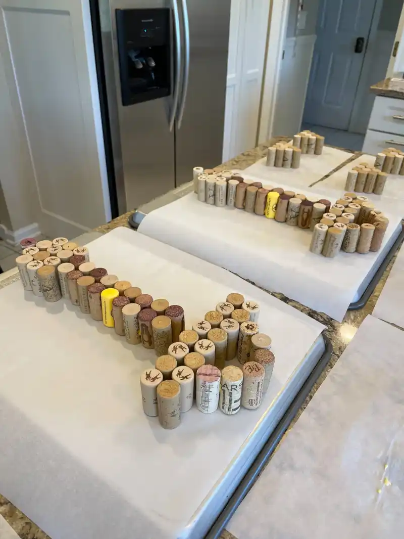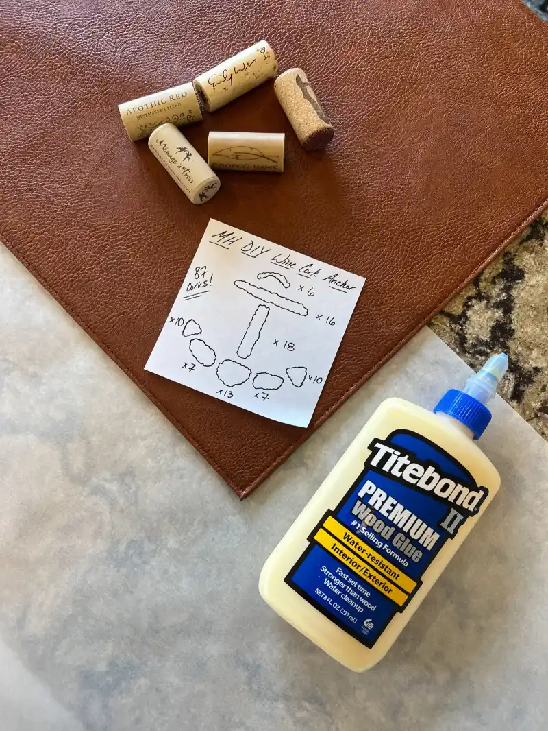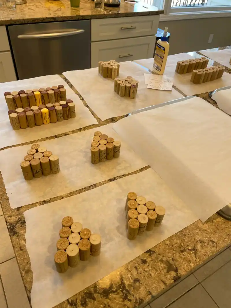 - Refer to the template to sort corks according to the sections of the anchor. Lay these out across your work surface to make gluing easier.
