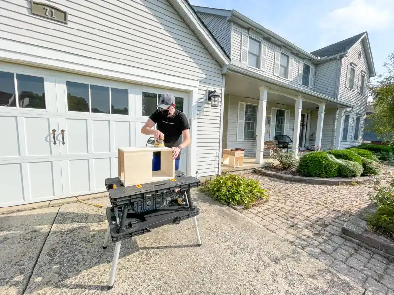 - Use a plate joiner and wood biscuits to attach the sides of the tables to the top and bottom pieces.