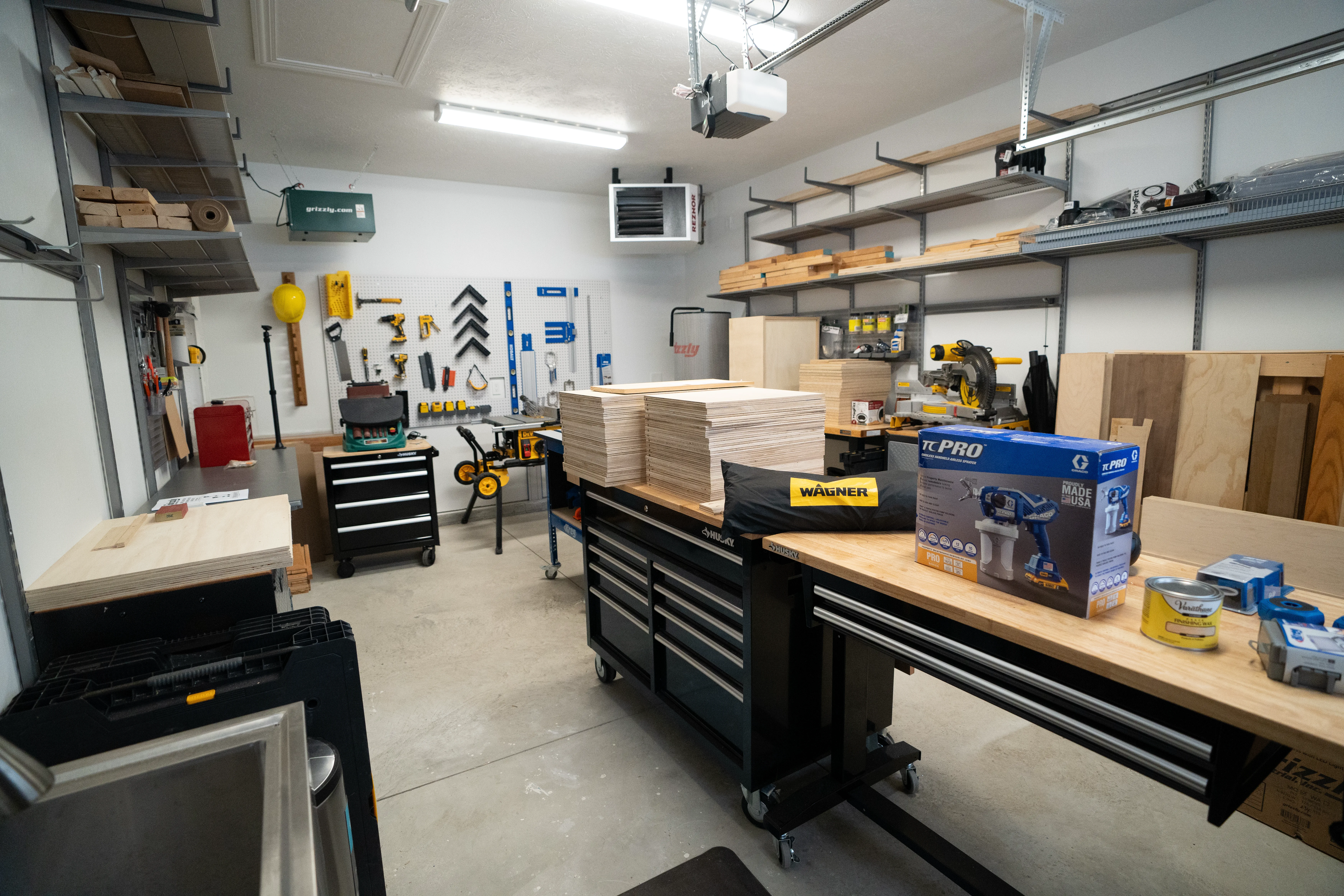 When we built our house from the ground up, we added a single-car “carriage garage” adjacent to the main garage. We had it insulated as we plumbed for a heater and added a 240V wall outlet for future needs. This 14' x 22' space would become our dedicated workshop.
