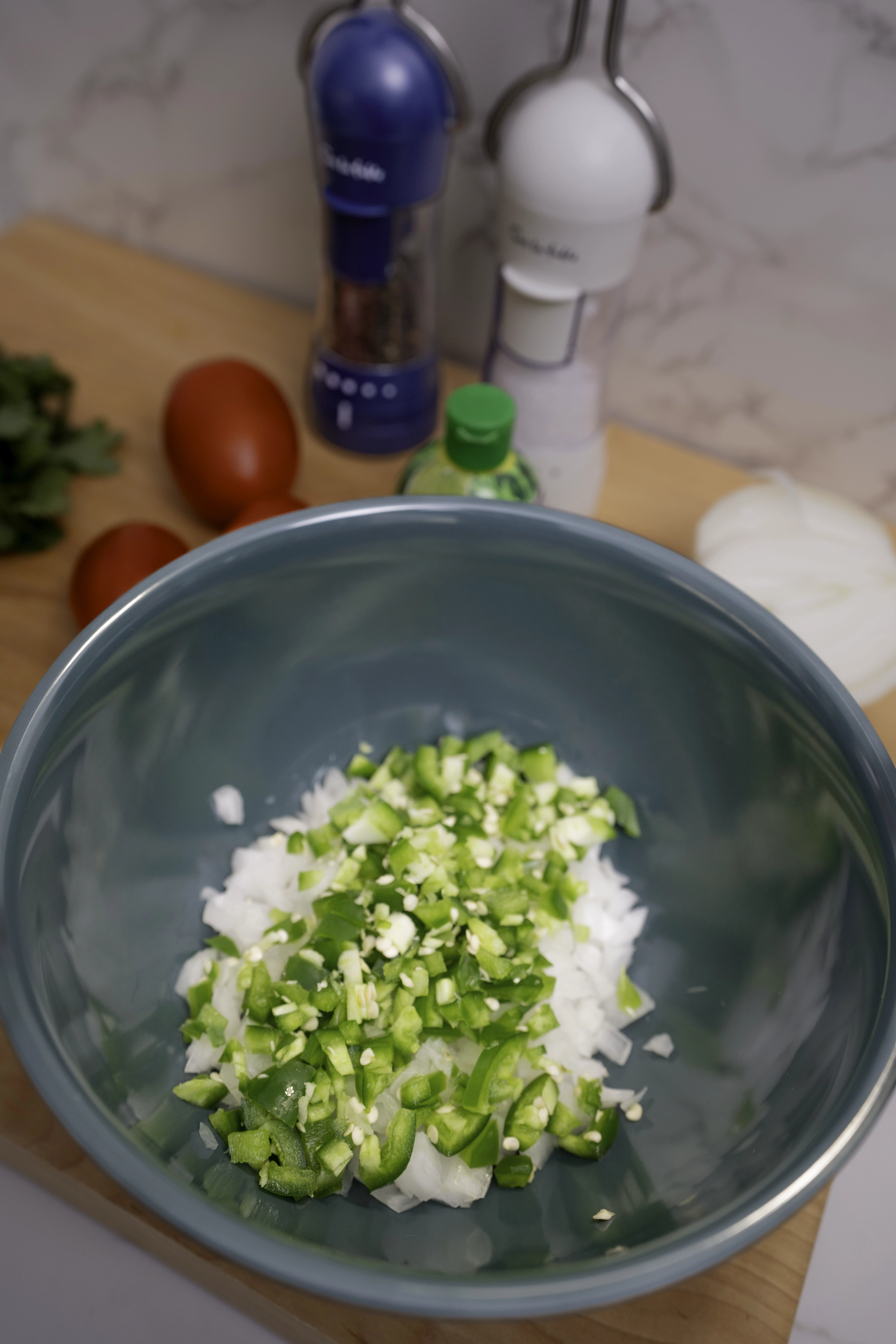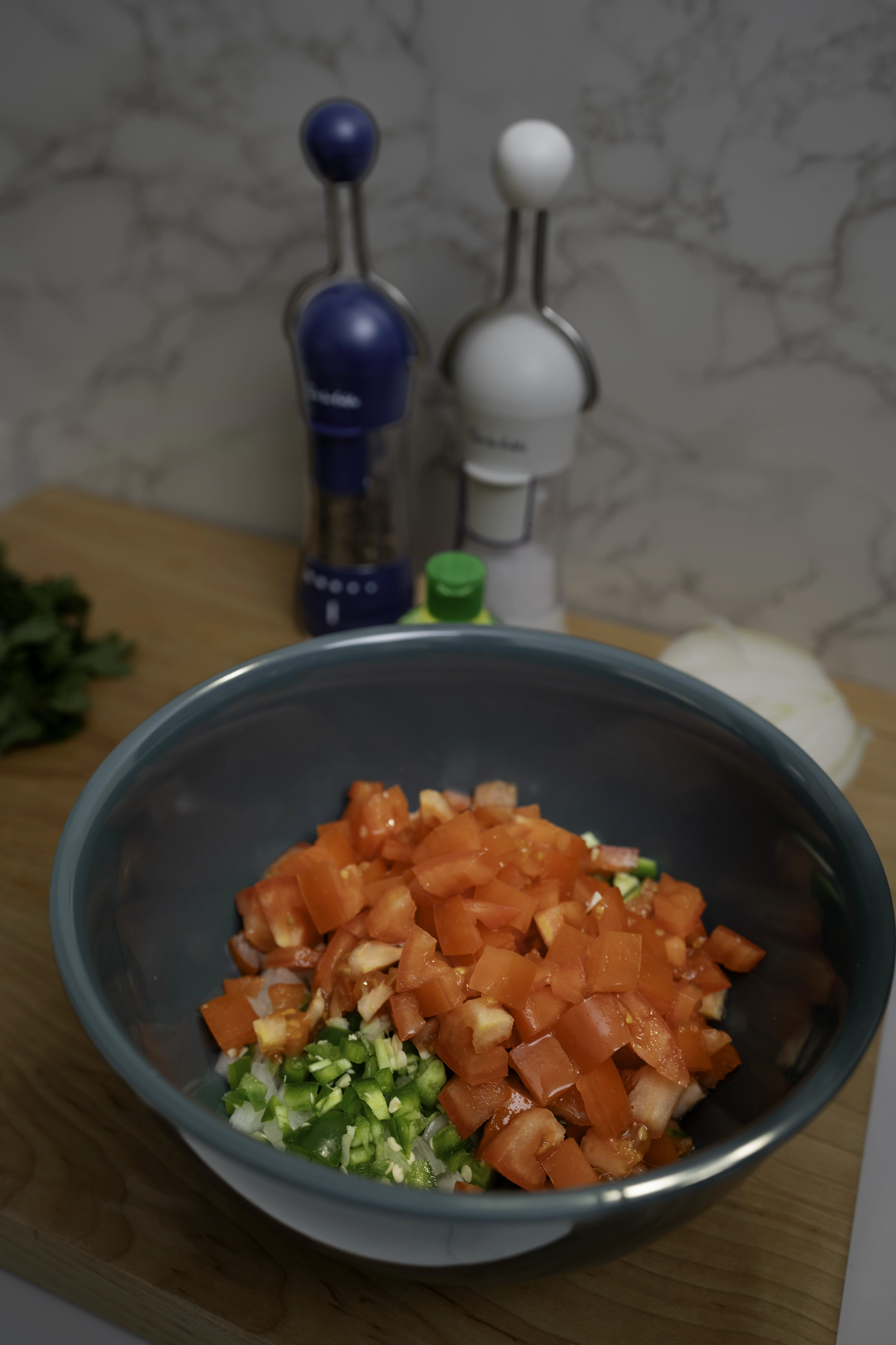- Rinse and finely chop fresh produce.