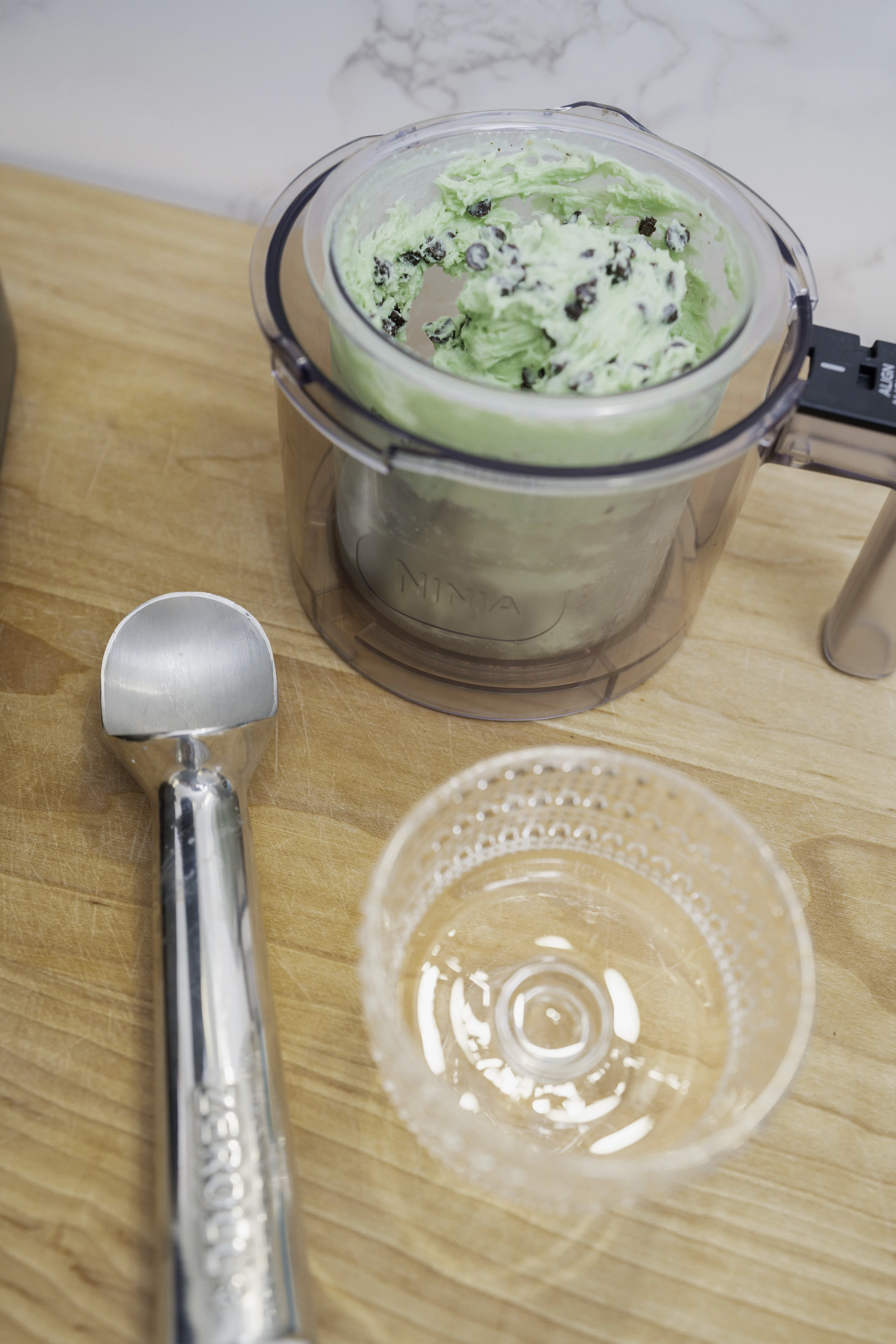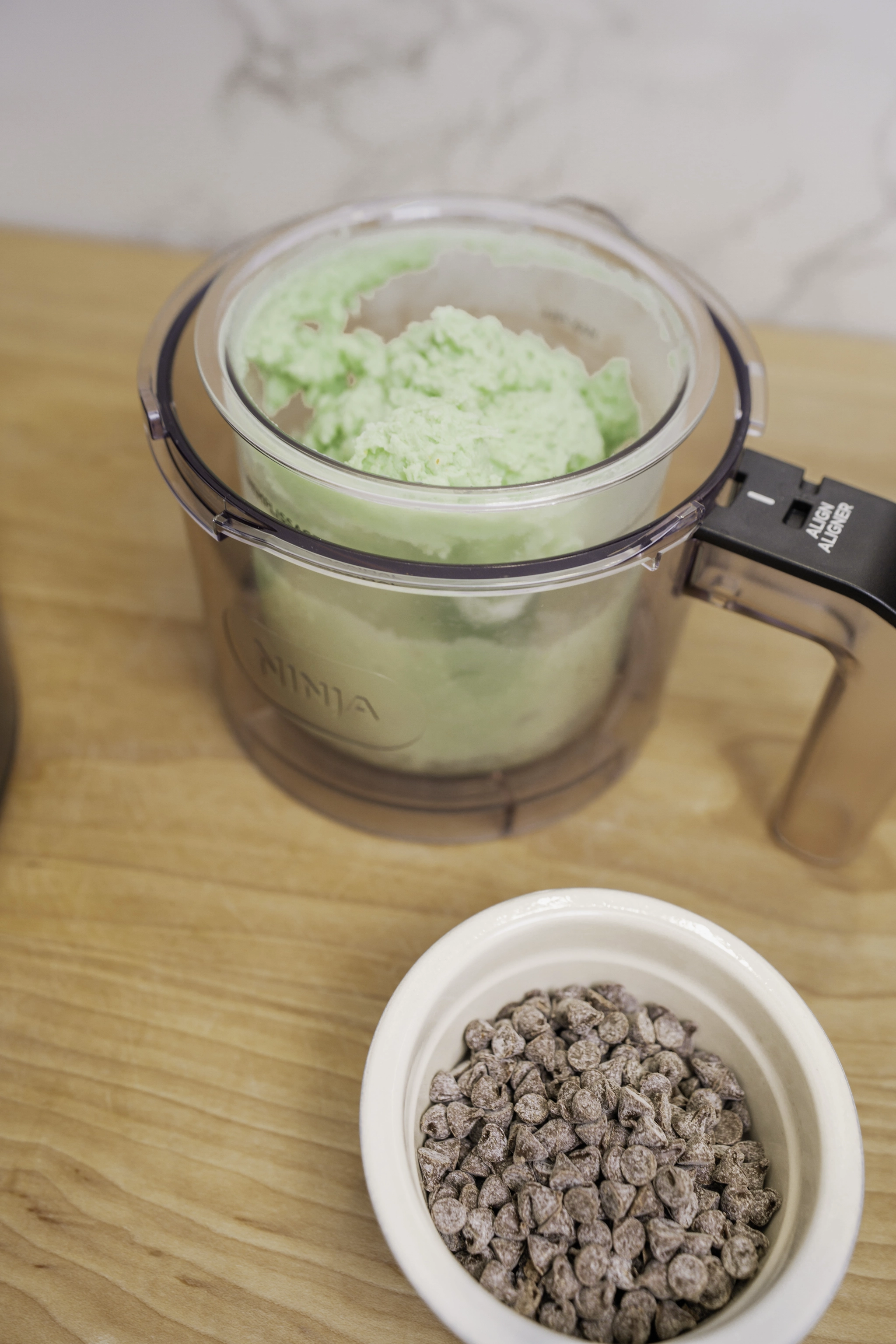 - Set on the ICE CREAM spin. Upon completion, remove container, and pour in chocolate chips. Put the container back in the CREAMi. Spin on the MIX-IN cycle.